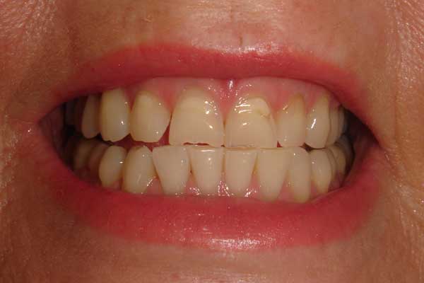 Example 29: Closing gaps and rebuilding worn teeth with Composite Veneers and 2 Composite bridges